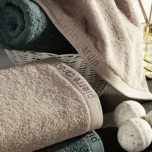 Ręczniki Pierre Cardin łączą luksus i funkcjonalność. Wyróżniają się miękkością, doskonałą chłonnością i prestiżowym designem z charakterystycznym napisem „Pierre Cardin”, dodając łazience elegancji i wyrafinowania.