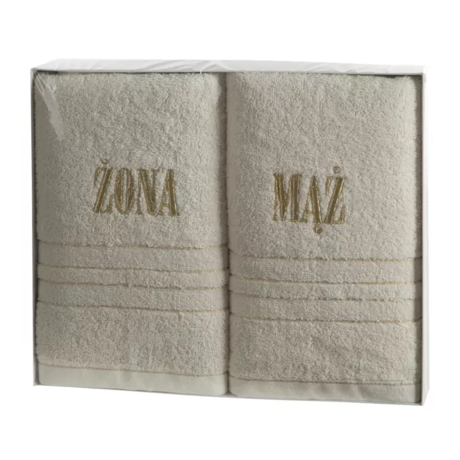 2. Ręcznik do rąk 30x50 cm bawełniany kolor jasnobeżowy w kontrastujące pasy 500 g/m2 DINA