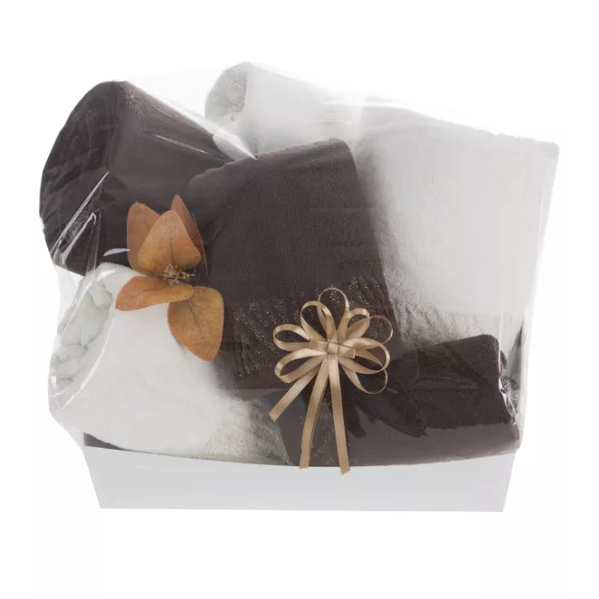 4. Ręcznik do rąk 30x50 cm bawełniany kolor ciemnobeżowy w kontrastujące pasy 500 g/m2 DINA