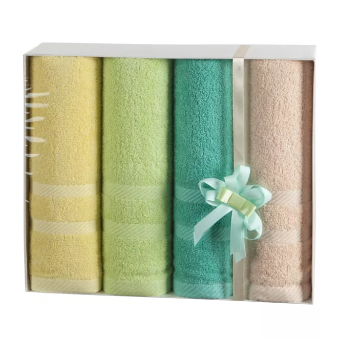 5. Ręcznik do rąk 30x50 cm bawełniany kolor musztardowy w kontrastujące pasy 500 g/m2 DINA