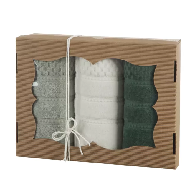 6. Ręcznik do rąk 30x50 cm bawełniany kolor ciemnozielony w kontrastujące pasy 500 g/m2 DINA