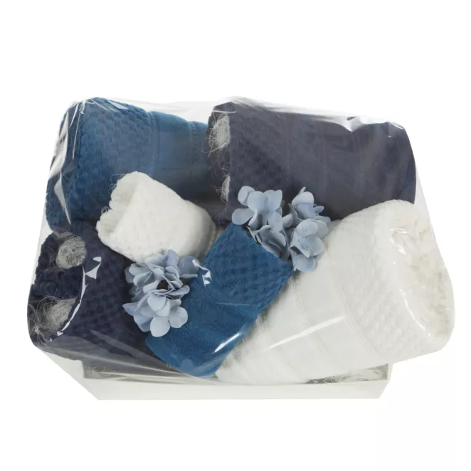 7. Ręcznik do rąk 30x50 cm bawełniany kolor granatowy w kontrastujące pasy 500 g/m2 DINA