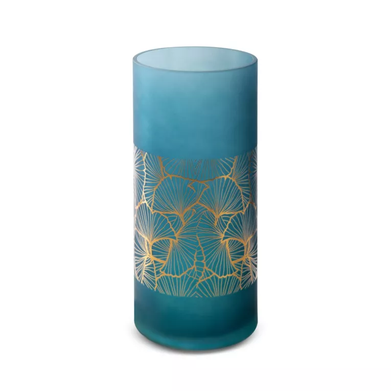 Kolekcję MUSA charakteryzuje energia granatu połączona z blaskiem złotych liści miłorzebu, które razem tworzą niezwykły klimat aranżacji. Wazon ze szkła artystycznego ma ascetyczną formę walca. Ciepłe, granatowo-złote barwy doskonale uzupełniają nietuzinkowy styl tej kolekcji. Wazon z barwionego szkła artystycznego to niezwykle stylowy dodatek do modnych i nowoczesnych wnętrz. Prostota kształtu sprawia, że taki dodatek znakomicie odnajdzie się we wnętrzu  typowo nowoczesnym, ale także w ponadczasowych, klasycznych aranżacjach. Wazony i świeczniki z tej samej kolekcji zestawione obok siebie utworzą innowacyjną dekorację.