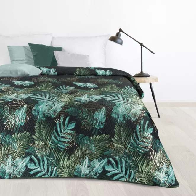1. Narzuta welwetowa ciemnozielony 170x210 cm pikowana w jodełkę metodą hot press SOFIA Eurofirany Premium