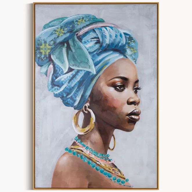 1. Obraz drukowany na płótnie portret tajemniczej kobiety z kolorowym turbanem 60 x 60 cm