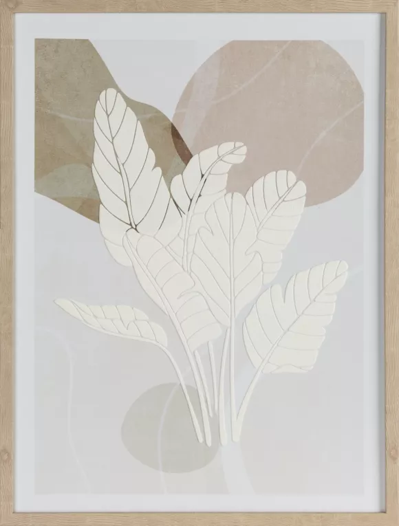 Poznaj ręcznie malowany na płótnie obraz przedstawiający kompozycję liści to dekoracja która wnosi do wnętrza pozytywną energię.  Dekoracja w jasnej tonacji idealnie sprawdzi się w aranżacji w stylu boho, a także w jasnym, nowoczesnym wnętrzu. Obraz został oprawiony drewnianą ramę z sosnowego drewna i jest gotowy do powieszenia na ścianie.  Nawet najbardziej stylowe wnętrze bez odpowiednio dobranych dodatków wydaje się niekompletne, dlatego nie wahaj się - już dziś wybierz oryginalne i stylowe dodatki do Twojego wnętrza.