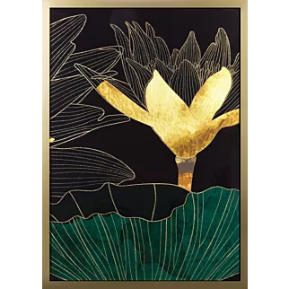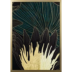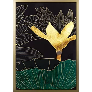 Szukasz nowoczesnych dodatków do wnętrza? Wnętrze z modnymi dekoracjami, które podkreślają jego charakter niezwykłego stylu. Przedstawiamy nowatrorską dekorację ścienną z nadrukiem liści i kwiatów w eleganckiej złotej ramieOryginalny w formie obraz  przykuwa uwagę błyszczącym nadrukiem.  Dekoracja w kontrastujących czarno-złotych barwach znakomicie pasuje do nowoczesnych wnętrz w stylu glamour.  A może szukasz pomysłu na niezwykły prezent?