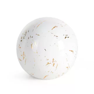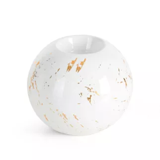 Patera dekoracyjna ARIELA  to luksusowy i elegancki element dekoracyjny, który wprowadza odrobinę glamour do każdego wnętrza. Patera, wykonana z wysokiej jakości glinki ceramicznej, charakteryzuje się solidną i trwałą konstrukcją, a jej powierzchnia została ozdobiona subtelnym przecieranym złotym wzorem. Złote akcenty, które zostały naniesione w sposób przemyślany, nadają patery wyrafinowanego blasku i elegancji, jednocześnie tworząc efekt lekko postarzany, który dodaje jej charakteru. Patera doskonale sprawdzi się jako samodzielna ozdoba na stole czy komodzie. Jej wyjątkowy design i złote detale wprowadzą do wnętrza odrobinę luksusu i wyrafinowania, stanowiąc elegancki akcent w każdej aranżacji.