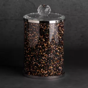 Szukasz eleganckich i oryginalnych dodatków kuchennych? Uwielbiasz styl glamour? Z pewnością nie przejdziesz obojętnie obok naszej propozycji szklanych pojemników w stylu glamour. Szklany pojemnik, którego podwójne szklane ścianki wysypane są drobnymi kryształkami i nakryty szklanym wieczkiem to prawdziwy diament we wnętrzu. Praktyczny pojemnik przechowa każdy drobiazg, który zechcesz w nim umieścić, przyda się w kuchni, łazience, czy salonie.