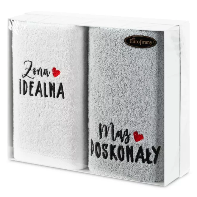 12. Zestaw ręczników bawełnianych na prezent 2 szt 50x90 cm z haftem ONA I ON kolor biały, turkusowy 400 g/m2