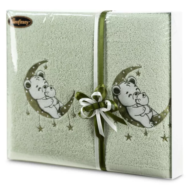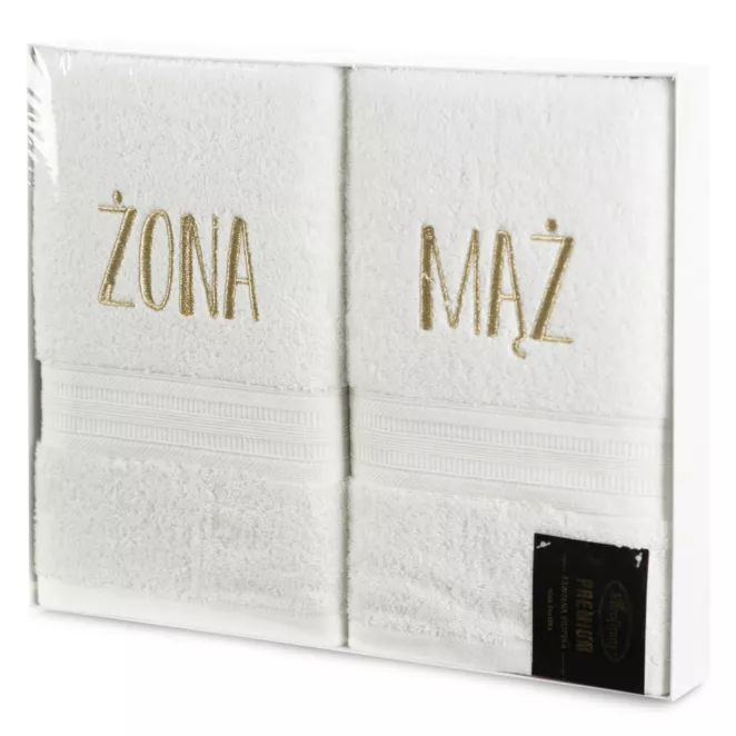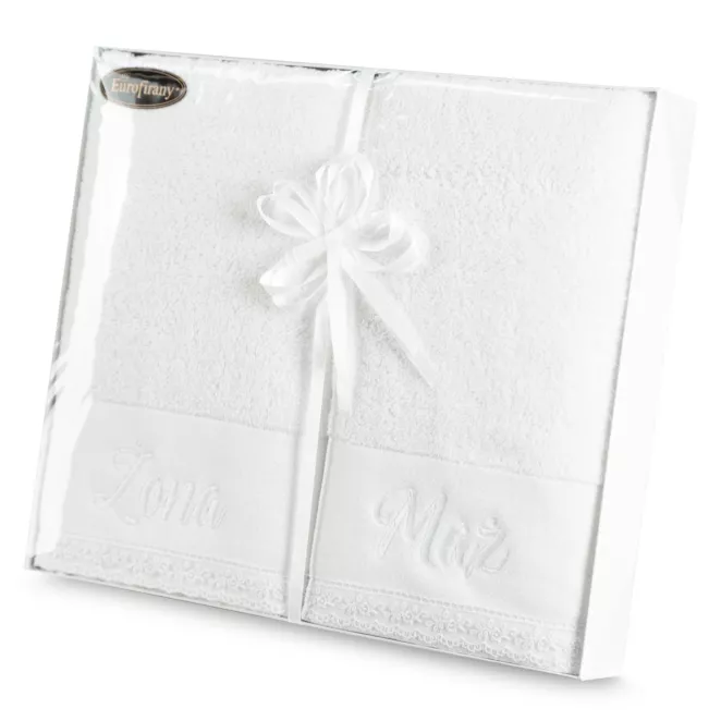 13. Zestaw ręczników bawełnianych na prezent 2 szt 70x140 cm z haftem ONA I ON kolor biały, turkusowy 400 g/m2