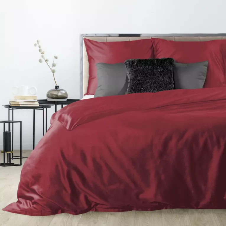 Pościel 160x200 cm bawełniana gładka kolor bordowy NOVA 3