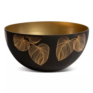 Pościel 160x200 cm z makosatyny bawełnianej kolor czarny, złoty z motywem liści VICTORIA 7 Limited Collection