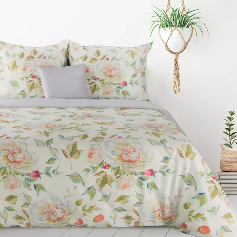 Szukasz pościeli, która wniesie do sypialni świeżość i kolor? Polecamy komplet pościeli ROSA ozdobiony romantycznym nadrukiem pastelowych róż, wniesie do wnętrza sypialni nastrój letniej świeżości. Przyjemna w dotyku i lekka tkanina z mikrowłókna delikatnie otula, zapewniając jednocześnie komfort cieplny. Taki skład daje gwarancję dłuższej żywotności pościeli, dzięki niemu pościel jest łatwa w pielęgnacji i przyjemna w prasowaniu. Pościel z mikrofibry  jest antyalergiczna, gdyż tworzy niekorzystne środowisko dla rozwoju roztoczy. Gęsto tkana tkanina poliestrowa charakteryzuje się miękkością oraz przyjemną strukturą, a ponadto nie gniecie się.