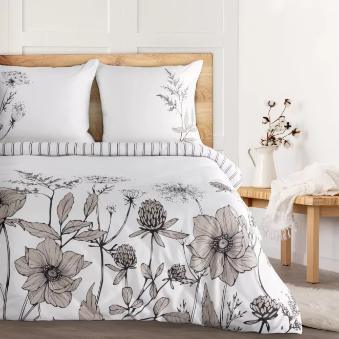 27. Pościel 160x200 cm z makosatyny bawełnianej kolor beżowo, biały zdobiona nadrukiem kwiatów REINA 45