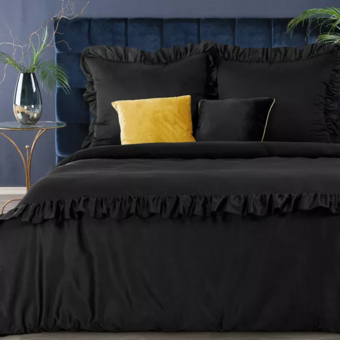 38. Pościel 220x200 cm z makosatyny bawełnianej kolor czarny, złoty z designerskim wzorem SOREIA Eva Minge