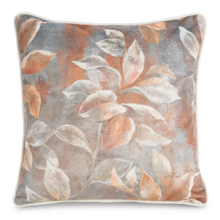 Poszukujesz modnych dodatków do wnętrza? Poszewkę ANELE  zdobi niezwykły, artystyczny nadruk delikatnych liści na przecieranym tle. Estetyczna lamówka zdobi brzegi poszewki, a całość prezentuje się niezwykle  stylowo.  Artystyczny nadruk liści na miękkiej welwetowej tkanine przyciąga wzrok,  a praktyczny zamek błyskawiczny wszyty w jednym z boków sprawia, że zmiana dekoracji trwa tylko krótką chwilę.