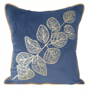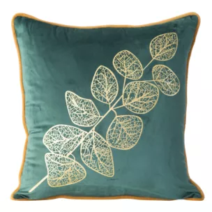 Kolekcja poszewek z welwetu o strukturze i miękkości aksamitu dekorowana złotym nadrukiem ażurowej gałązki oraz ozdobną wypustką to elegancki dodatek, który odmieni wygląd wnętrza. Poszewka z modnym złotym nadrukiem sprawia, że taki dodatek wspaniale zaprezentuje się we wnętrzu w stylu glamour.  Po praniu tkanina nie kurczy się ani nie wymaga pracochłonnego prasowania. Kolekcja składa się kilku kolorów, które znakomicie wyglądają połączone razem na kanapie. Zamek błyskawiczny wszyty w jednym z boków umożliwia szybką zmianę poszewki.
