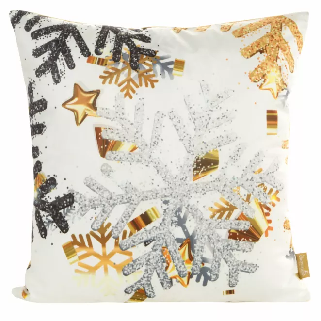1. Poszewka na poduszkę 30x45 cm welwetowa, granatowo biała zdobiona nadrukiem ze śnieżynkami CAROL