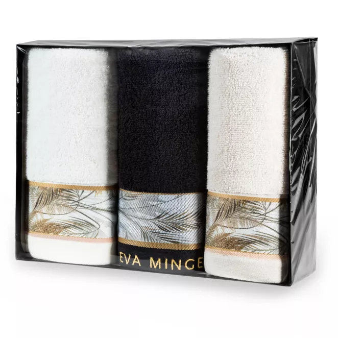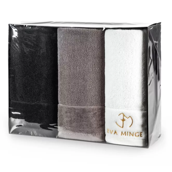 6. Zestaw ręczników bawełnianych na prezent 3 szt kolor czarny 500 g/m2 Eva Minge 12