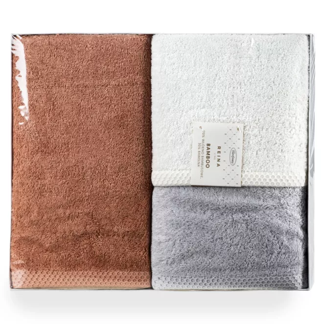 5. Zestaw ręczników bawełnianych na prezent 3 szt kolor biały, brązowy 500 g/m2 Eva Minge 11