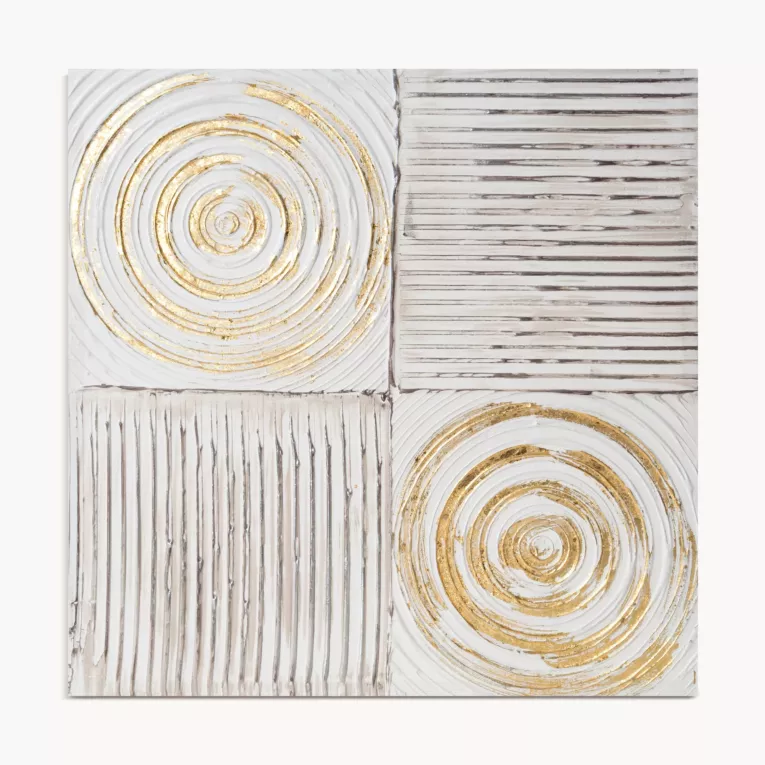 Jeśli poszukujesz oryginalnej i nowoczesnej dekoracji wnętrza, polecamy oryginalny ręcznie malowany na płótnie obraz, wykonany ciekawą techniką, przy użyciu różnych materiałów; szpachli malarskiej oraz farby. Ręcznie malowany na płótnie obraz składający się z elementów o różnej fakturze,  będzie idealnym dopełnieniem przestrzeni nowoczesnego mieszkania, gabinetu lub biura. Świetnie wpasuje się również, w każdą komercyjną przestrzeń. Obraz świetnie wpisuje się w przestrzeń nowoczesnych, awangardowych wnętrz, szczególnie tych urządzonych w minimalistycznym stylu. Obraz jest gotowy do powieszenia na ścianie, płótno jest naciągnięte na drewnianą ramę i nie wymaga oprawy.