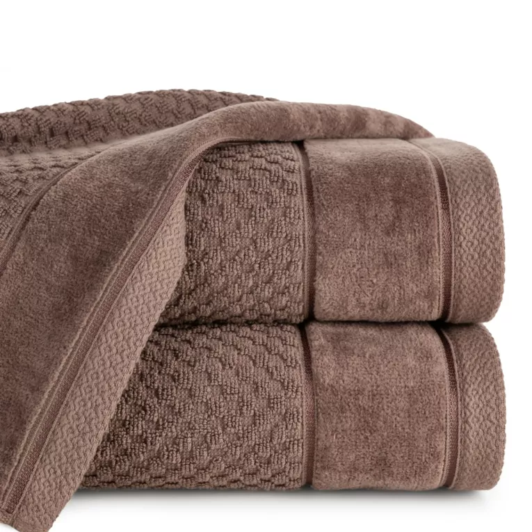 Ręcznik do rąk 30x50 cm bawełniany kolor jasnobrązowy o strukturze krateczki z szeroką welurową bordiurą 500 g/m2 FRIDA