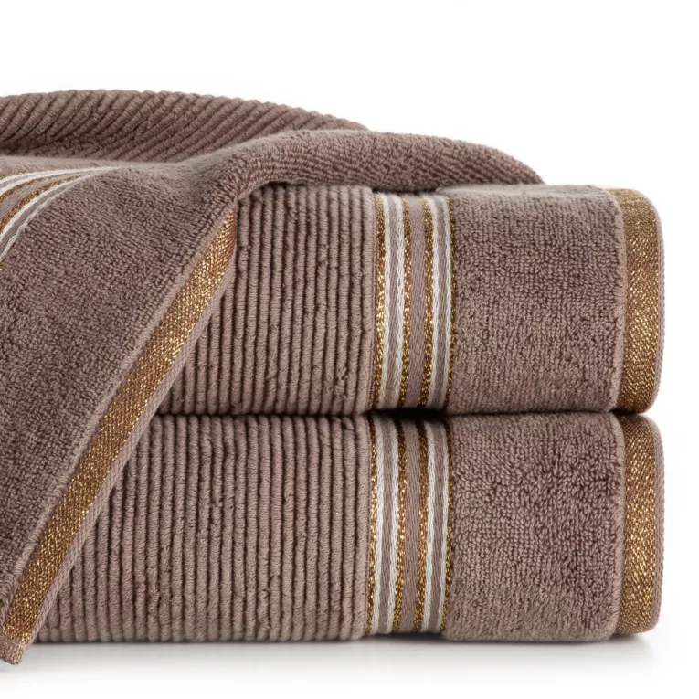 Ręcznik do rąk 30x50 cm bawełniany kolor jasnobrązowy z błyszczącą bordiurą 530 g/m2 FILON