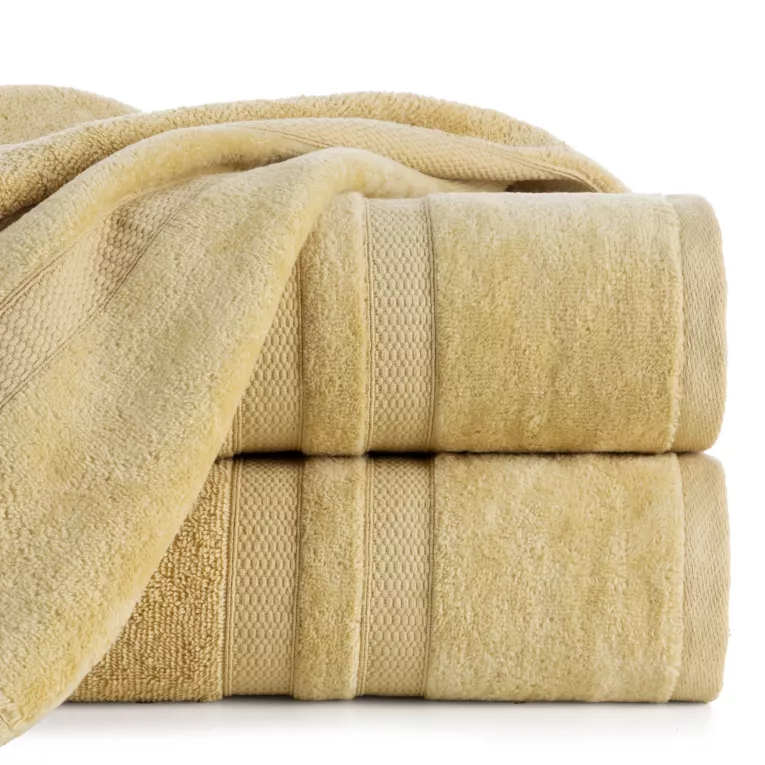 Ręcznik do rąk 30x50 cm bawełniany kolor musztardowy z welwetową bordiurą w pasy 500 g/m2 PORTO