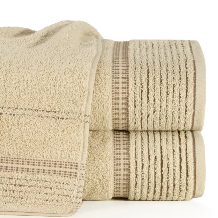 Ręcznik kąpielowy 50x90 cm bawełniany kolor beżowy z bordiurą w paseczki 450 g/m2 TAYLOR Ella Line