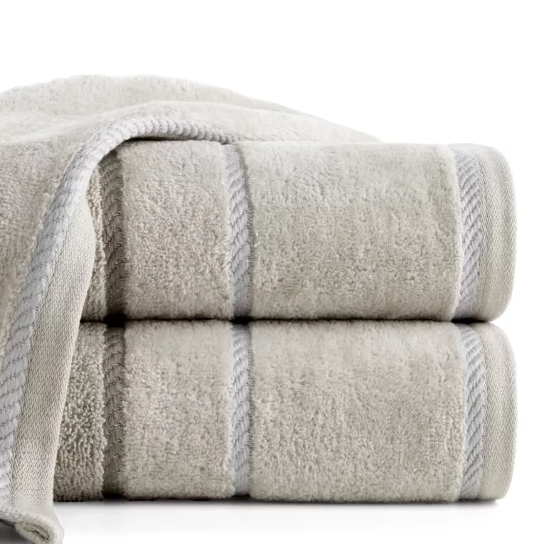 Ręcznik kąpielowy 50x90 cm bawełniany kolor beżowy z welwetową bordiurą i kontrastującymi paseczkami 500 g/m2 NEL