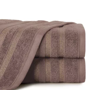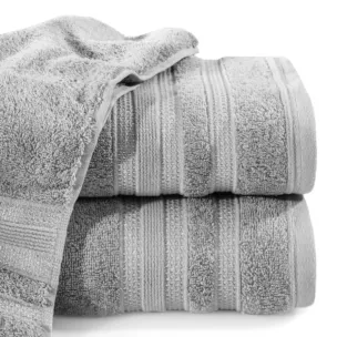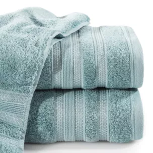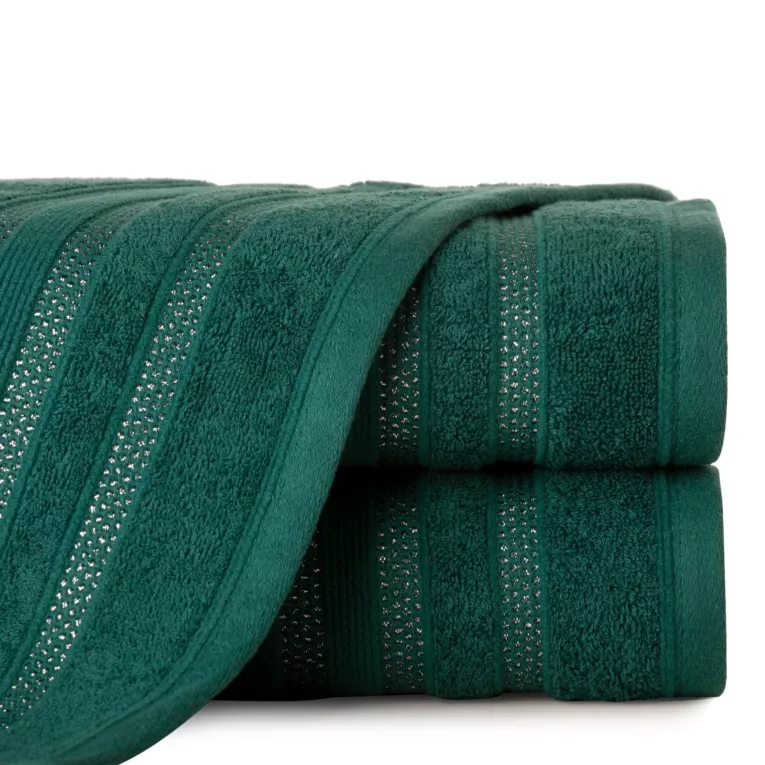 Ręcznik kąpielowy 50x90 cm bawełniany kolor ciemnozielony z bordiurą w błyszczące paski 500 g/m2 JUDY