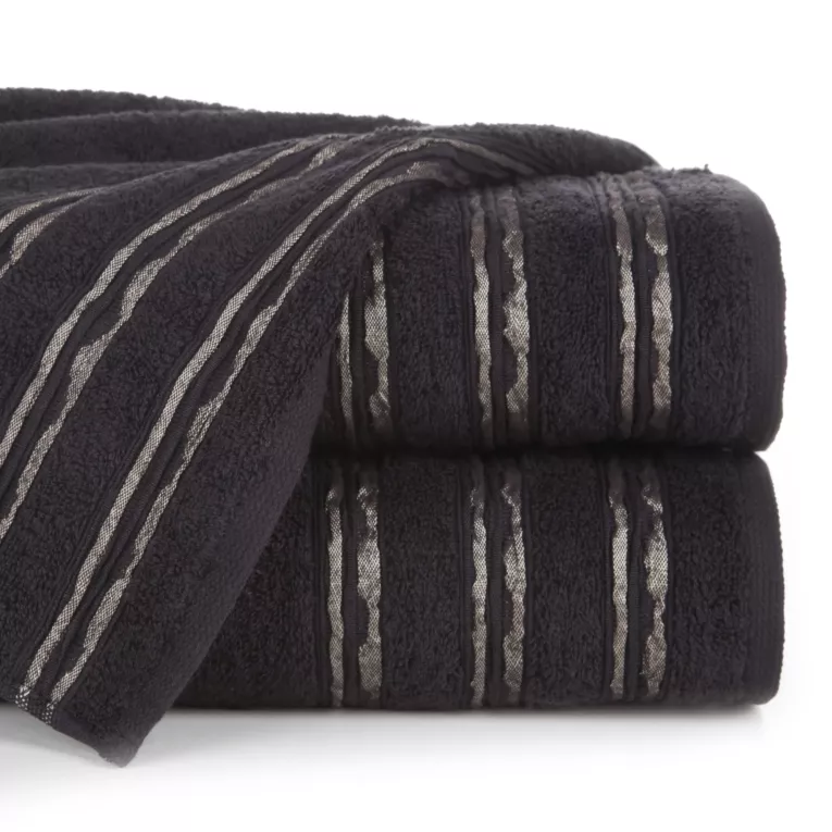 Ręcznik kąpielowy 50x90 cm bawełniany kolor czarny z ozdobną żakardową bordiurą z marszczeniem 480 g/m2 JONAS