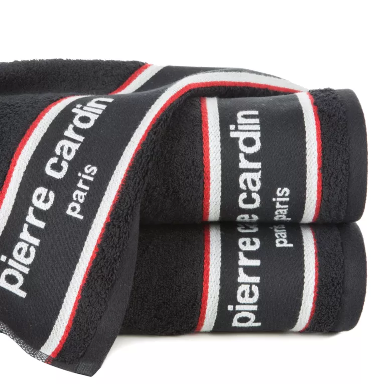 Ręcznik kąpielowy 50X90 cm bawełniany kolor czarny z żakardową bordiurą i haftowanym logiem marki Pierre Cardin 450 g/m2 KARLA