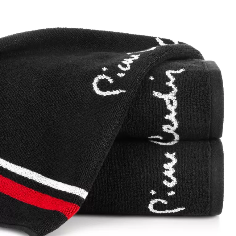 Ręcznik kąpielowy 50x90 cm bawełniany kolor czarny zdobiony paseczkami 450 g/m2 DARIO Pierre Cardin