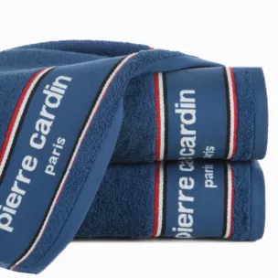 Ręcznik kąpielowy 50x90 cm bawełniany kolor granatowy z żakardową bordiurą i haftowanym logiem marki Pierre Cardin 450 g/m2 KARLA