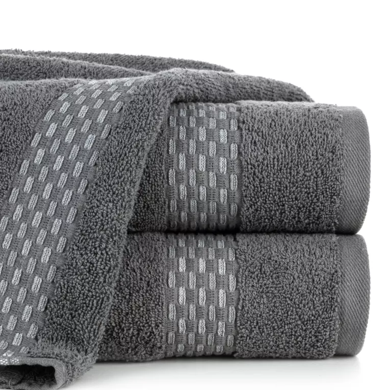 Ręcznik kąpielowy 50x90 cm bawełniany kolor stalowy,popielaty z przeplataną bordiurą 500 g/m2 RIVA