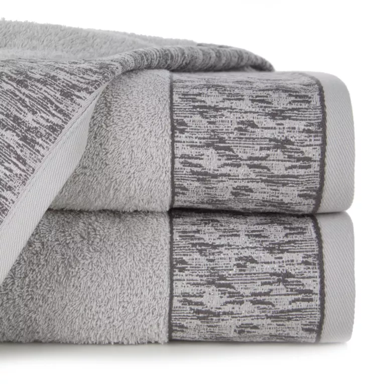 Ręcznik kąpielowy 50x90 cm bawełniany kolor stalowy z żakardową bordiurą przetykaną błyszczącą nicią 500 g/m2 KIARA