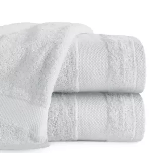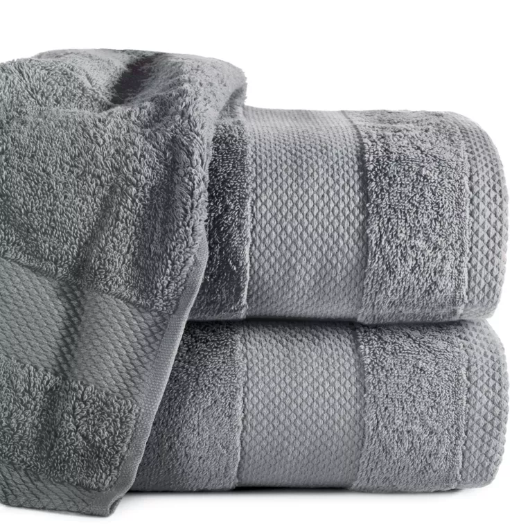 Ręcznik kąpielowy 50x90 cm bawełniany kolor stalowy z żakardową bordiurą w stylu eko 500 g/m2 LORITA