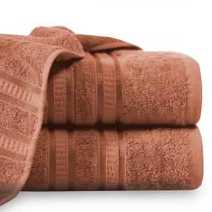 Ręcznik kąpielowy 50x90 cm z włókien bambusowych kolor turkusowy z bordiurą tkaną w ozdobne pasy 3D 500 g/m2 MILA