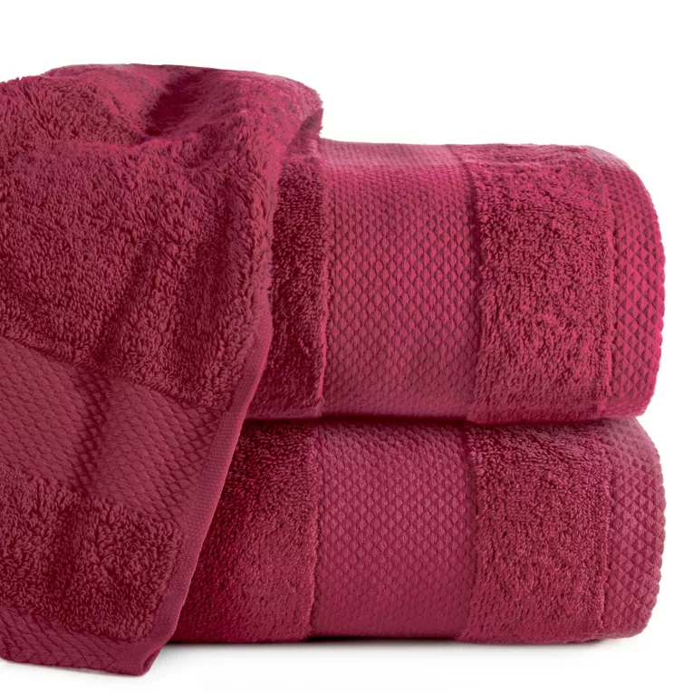 Ręcznik kąpielowy 70x140 cm bawełniany kolor amarantowy z żakardową bordiurą w stylu eko 500 g/m2 LORITA