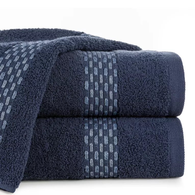 Ręcznik kąpielowy 70x140 cm bawełniany kolor granatowy z przeplataną bordiurą 500 g/m2 RIVA