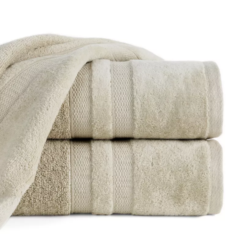 Ręcznik kąpielowy 70x140 cm bawełniany kolor jasnobeżowy z welwetową bordiurą w pasy 500 g/m2 PORTO
