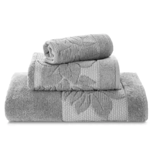 Ręcznik zdobi wytłaczana bordiura w subtelny, kwiatowy wzór, który dodaje mu klasy i sprawia, że pięknie prezentuje się w każdej łazience, zarówno nowoczesnej, jak i klasycznej.