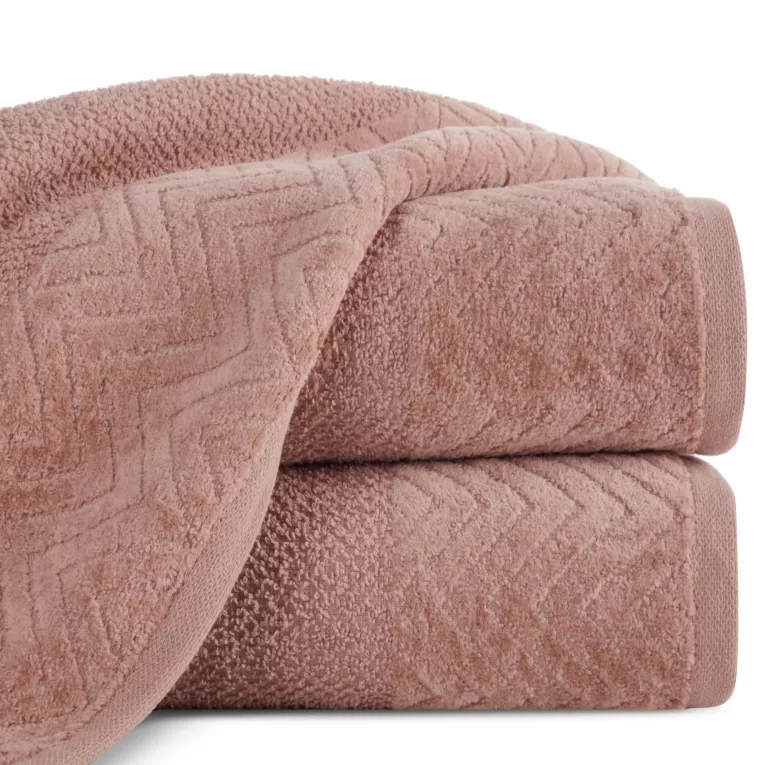 Ręcznik kąpielowy 70x140 cm bawełniany kolor pudrowy o ryżowej strukturze z welwetową bordiurą 500 g/m2 LOREN