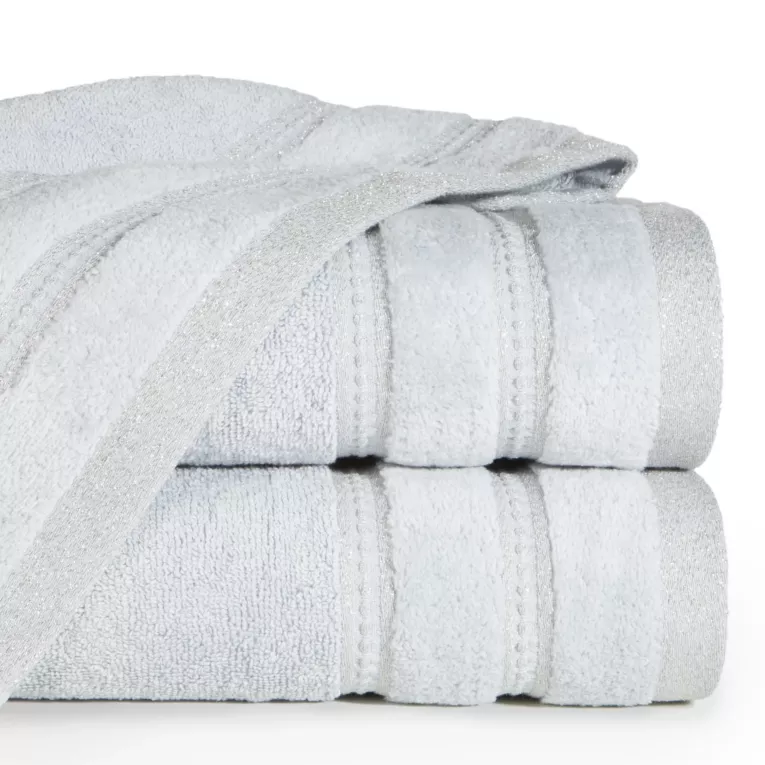Ręcznik kąpielowy 70x140 cm bawełniany kolor srebrny z błyszczącą bordiurą 500 g/m2 GLORY 1
