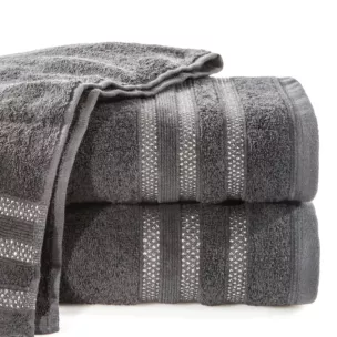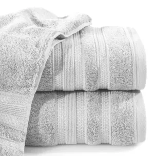 Ręcznik kąpielowy 70x140 cm bawełniany kolor srebrny z bordiurą w błyszczące paski 500 g/m2 JUDY