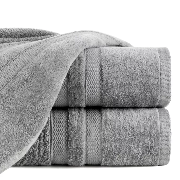 Ręcznik kąpielowy 70x140 cm bawełniany kolor stalowy z welwetową bordiurą w pasy 500 g/m2 PORTO