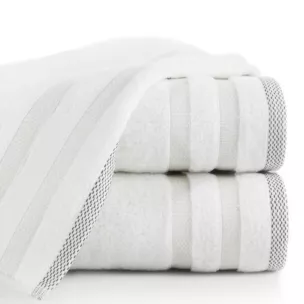 Ręcznik kąpielowy 70x140 cm bawełniany kolor stalowy zero twist z bordiurą w paski 400 g/m2 RIKI