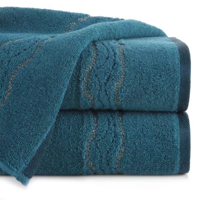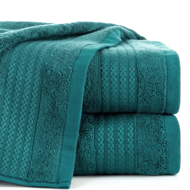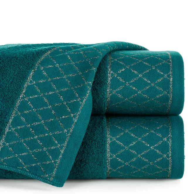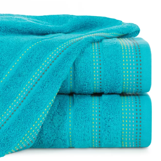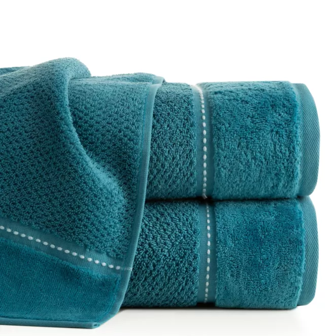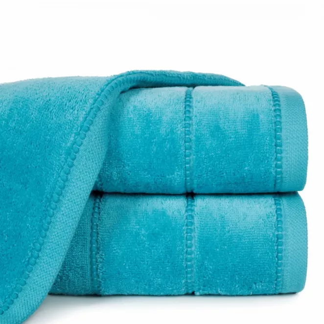 1. Ręcznik kąpielowy 50x90 cm bawełniany kolor turkusowy z błyszczącą bordiurą 530 g/m2 FILON